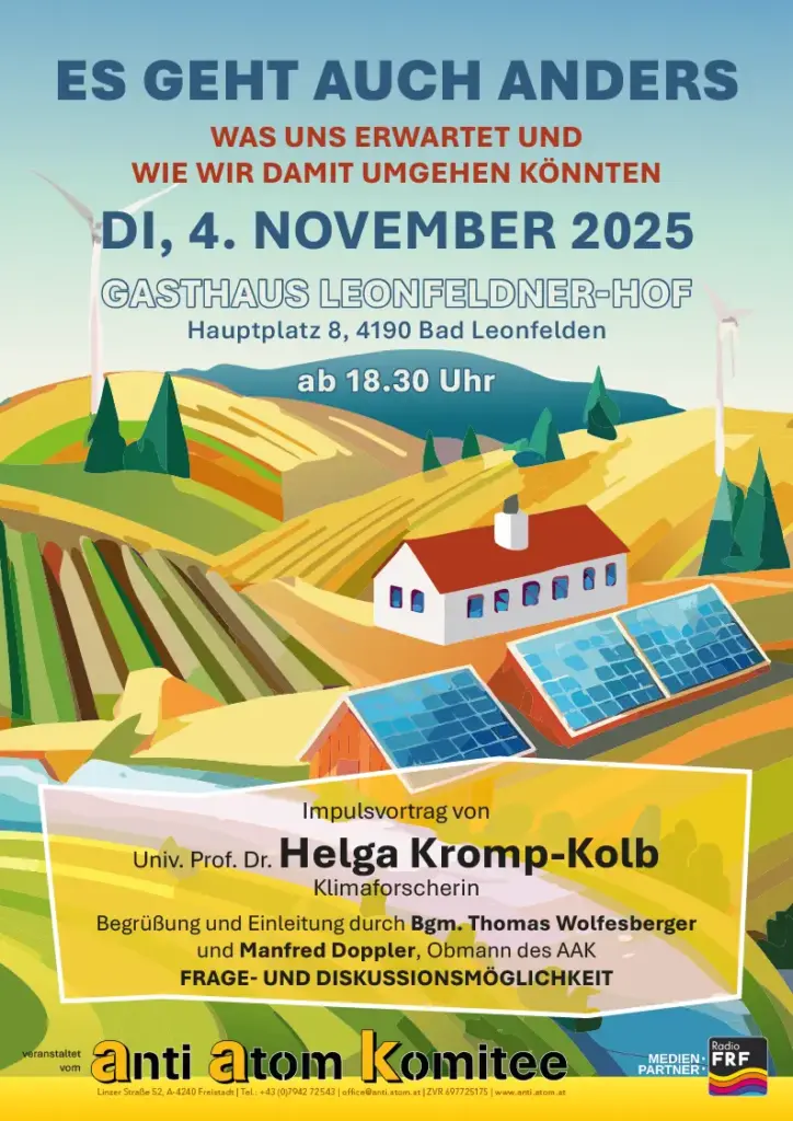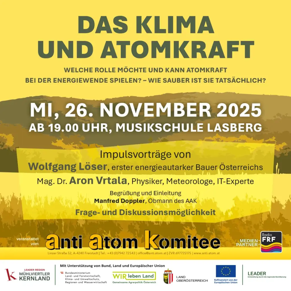 Im Rahmen des Leaderprojekts „Das Klima und Atomkraft“ des Mühlviertler Kernlands Region Freistadt veranstaltet das Anti Atom Komitee gemeinsam mit